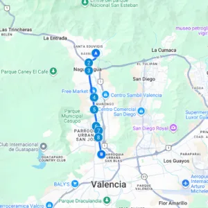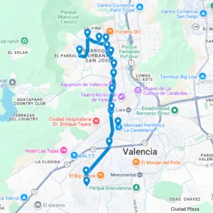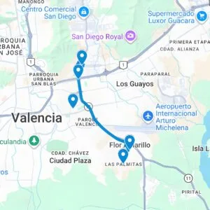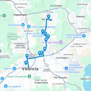 Pueblo de San Diego, La Esmeralda, Fin de siglo, El Morro, Av. Don Julio Centeno, Big Low, Metrópolis, Makro, Av. Lara, Centro, Av. Anzoátegui