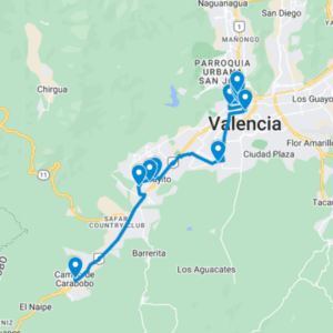 Tronconero, Vigirima, El Toco, Hospitales, Calle Piar, Calle Plaza, Calle Sucre, Loma Linda, San Agustín